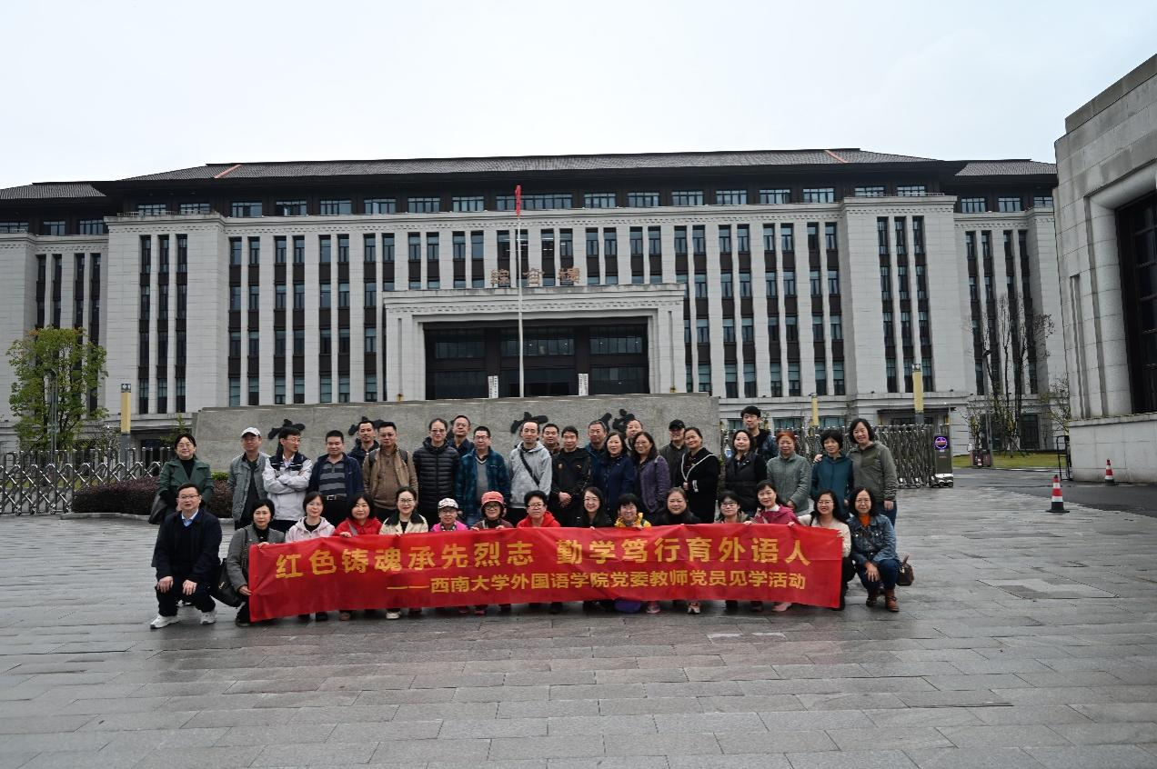 2025年11月1日至2日,西南大学外国语学院组织党员教师及工会会员赴宜宾,成功举办了以“红色铸魂承先烈志 勤学笃行育外语人”及“踏寻先辈足迹,凝聚学院力量,共谱发展华章”为主题的红色见学与工会活动。此次活动不仅是一次对历史的回溯,更是一场凝聚力量、激发使命的精神之旅。