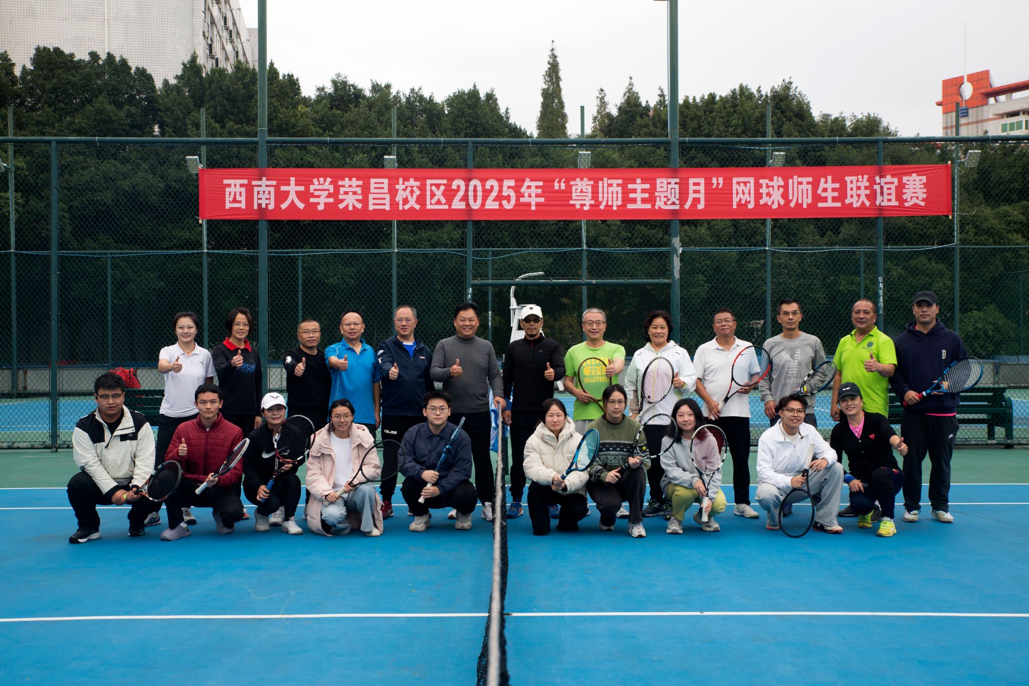 11月15日,由西南大学工会委员会主办,西南大学荣昌校区教职工网球协会承办的西南大学荣昌校区“尊师主题月”师生网球联谊赛在荣昌校区网球场精彩上演,30余名师生热情高涨地参与其中,用运动的激情点燃了校园的活力,展现出健康积极向上的精神风貌。
