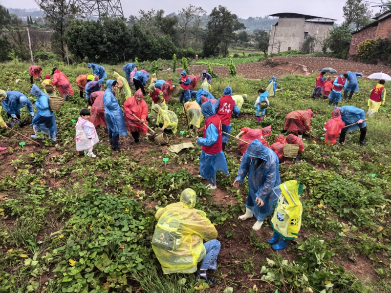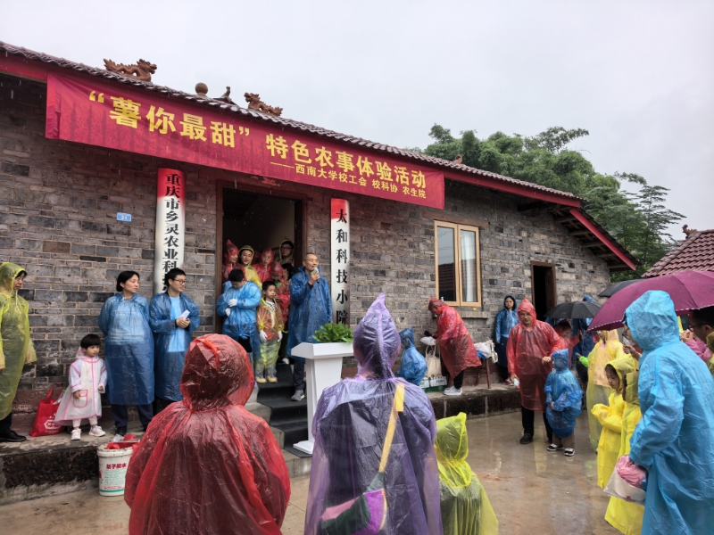 2025年10月18日下午,细雨蒙蒙,薯香四溢,由西南大学校工会、校科协与农学与生物科技学院联合主办的“薯你最甜——劳动知识味蕾三重体验”农事活动在静观镇太和农场成功举行。来自全校29个二级单位的57老师和家庭共127人参加了本次活动。